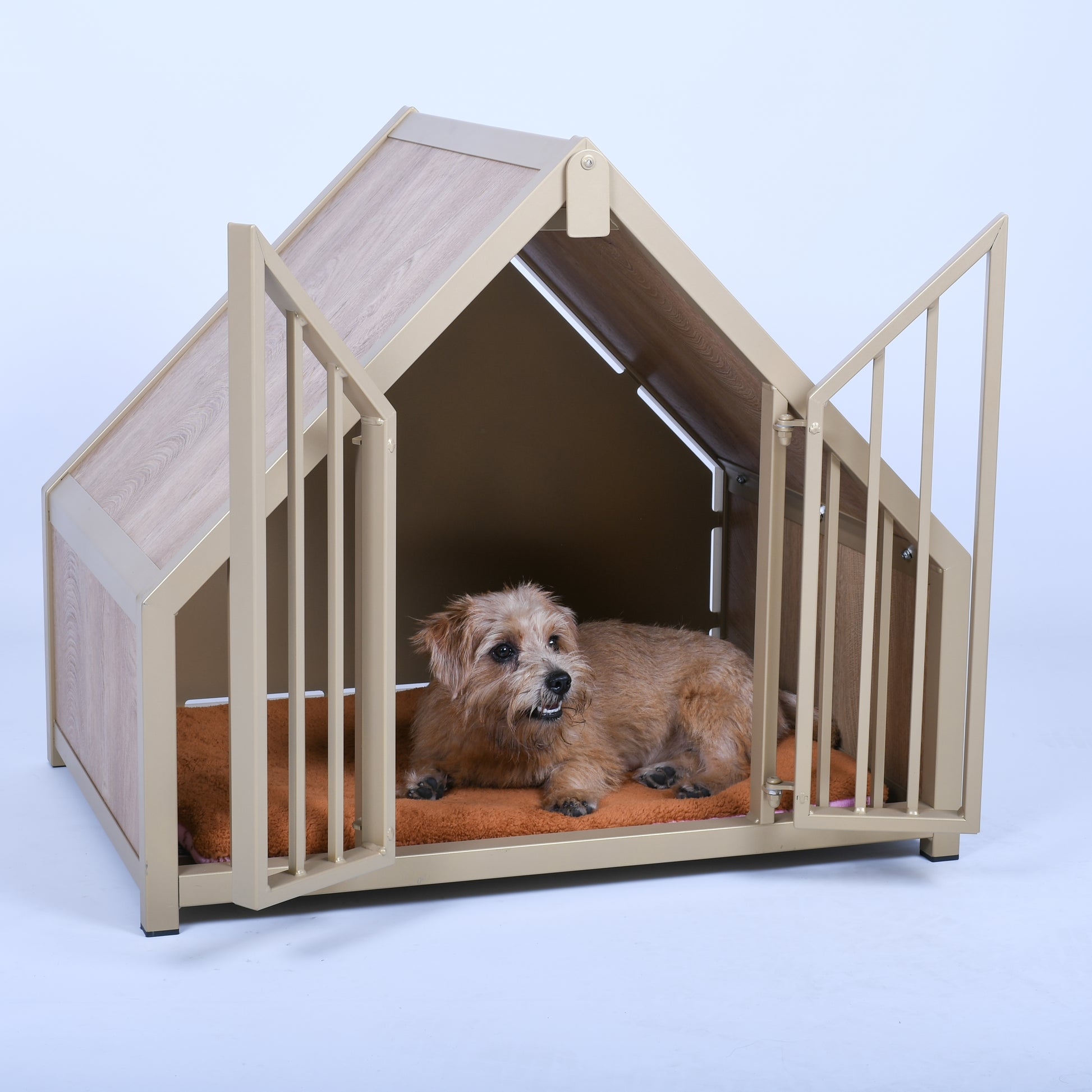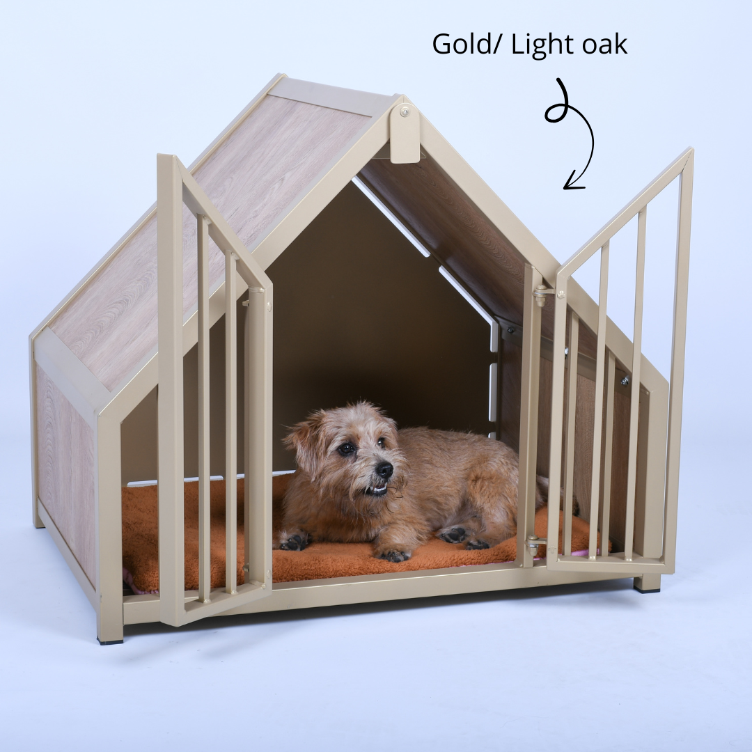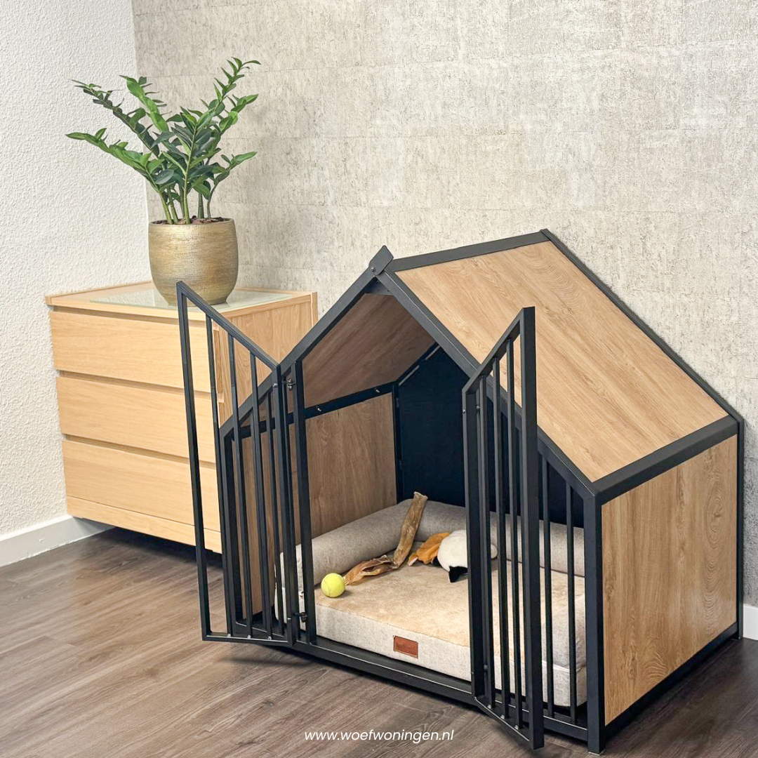Hondenbench huisje staal en hout light oak